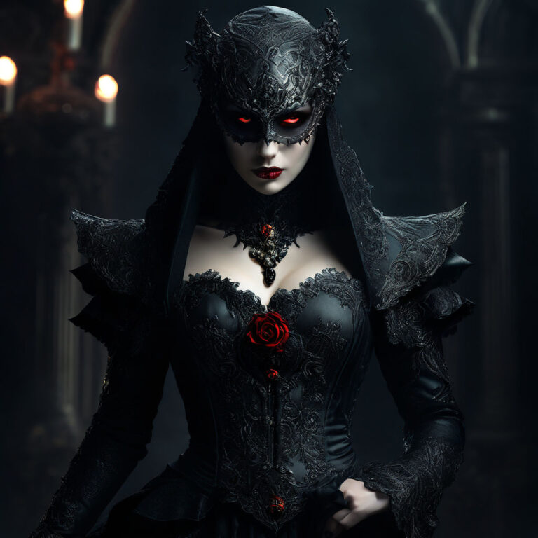 A darkly elegant gallery of vampire portraits adorned with ornate Venetian masks. These images blend gothic sensuality with aristocratic decadence, revealing immortal women hidden behind lace, metal, and shadow. Glowing eyes, crimson accents, and candlelit halls evoke secret rituals, forbidden desire, and the eternal masquerade of creatures who rule the …