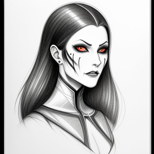 A mystic vampiric oracle with piercing red eyes that seem to read the secrets hidden in shadows. Her expression is unwavering, as if she sees through fate itself. Sleek dark hair falls symmetrically over her shoulders, enhancing her supernatural poise. She radiates quiet power, like an ancient seer who interprets omens written in blood and darkness.