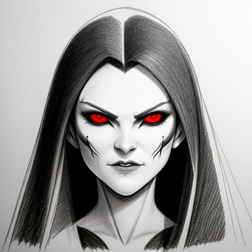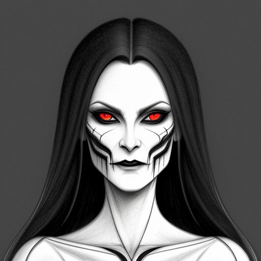 A sovereign of the night, equally elegant and terrifying. Her long, straight hair and porcelain skin evoke the stillness of moonlit hours, while her blazing red eyes break the silence with predatory brilliance. Her gaze alone asserts dominance over the nocturnal realm she rules with unyielding resolve.