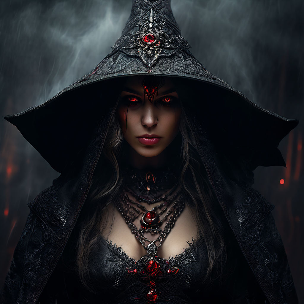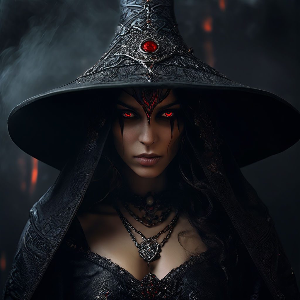 A curated gallery of dark witch portraits inspired by ancient sorcery and gothic mysticism. Each image captures powerful, enigmatic women shrouded in shadow—burning eyes, arcane symbols, ritual garments, and ember-lit atmospheres. These witches embody elegance and menace, beauty and danger, evoking timeless magic, forbidden knowledge, and the quiet authority of those who walk between worlds.